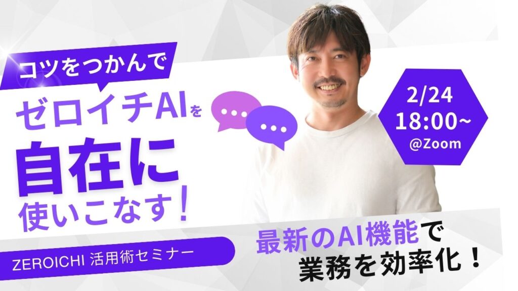 ゼロイチAI活用術セミナー ~もっと使いこなそう!~ 「ゼロイチAIを導入したけど、まだ使いこなせていない…」 そんな声を耳にします。AIツールは便利だけど、どう活用すればいいのか分からない。せっかく契約したのに、十分に […]